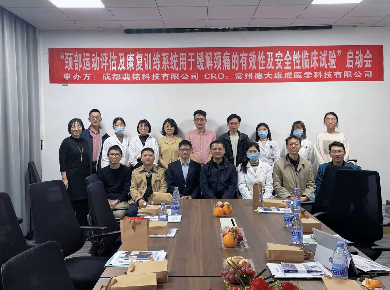 2023年3月7日,夸克医药(中国)有限公司下属成都翡铭科技有限公司研发的 “颈部运动评估及康复训练系统”设备(翡铭禾乐®)临床试验启动会在蚌埠医学院第一附属医院顺利召开,标志着我公司研发的首款VR+智能康复产品正式进入临床试验受试者入组阶段。该产品前期由四川大学华西康复中心进行临床研究,实现了较好的预期效果。